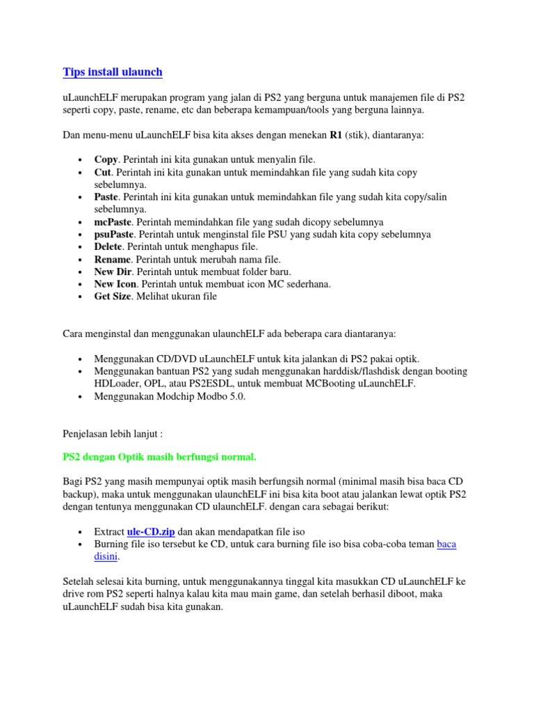 Ulaunchelf Skin Ulaunchelf Mcpaste from hoe.hg8245apengertian.space Ulaunch adalah sebuah tool ps2 yang sangat banyak sekali kegunaanya. Ubah nama ulaunch.elf ke boot.elf 3. Rubah write speed menjadi 2x 6. Doc cara main ps2 dengan flashdisk vicky rolando academia edu. Ekstrak software ulaunch ke flashdisk 2. Cara dibawah ini bisa kita lakukan apabila kita malas utk mengcopy ulaunchelf ke cd/dvd atau dvd ps2 kita sudah tidak bisa membaca cd/dvd lagi. Cara pasang ulaunch dvd : Pasang ic matrix, membuat booting, mengisi game silakan pilih game kaset, masukkan ke dvd room, tunggu sampai pembacaan data selesai.